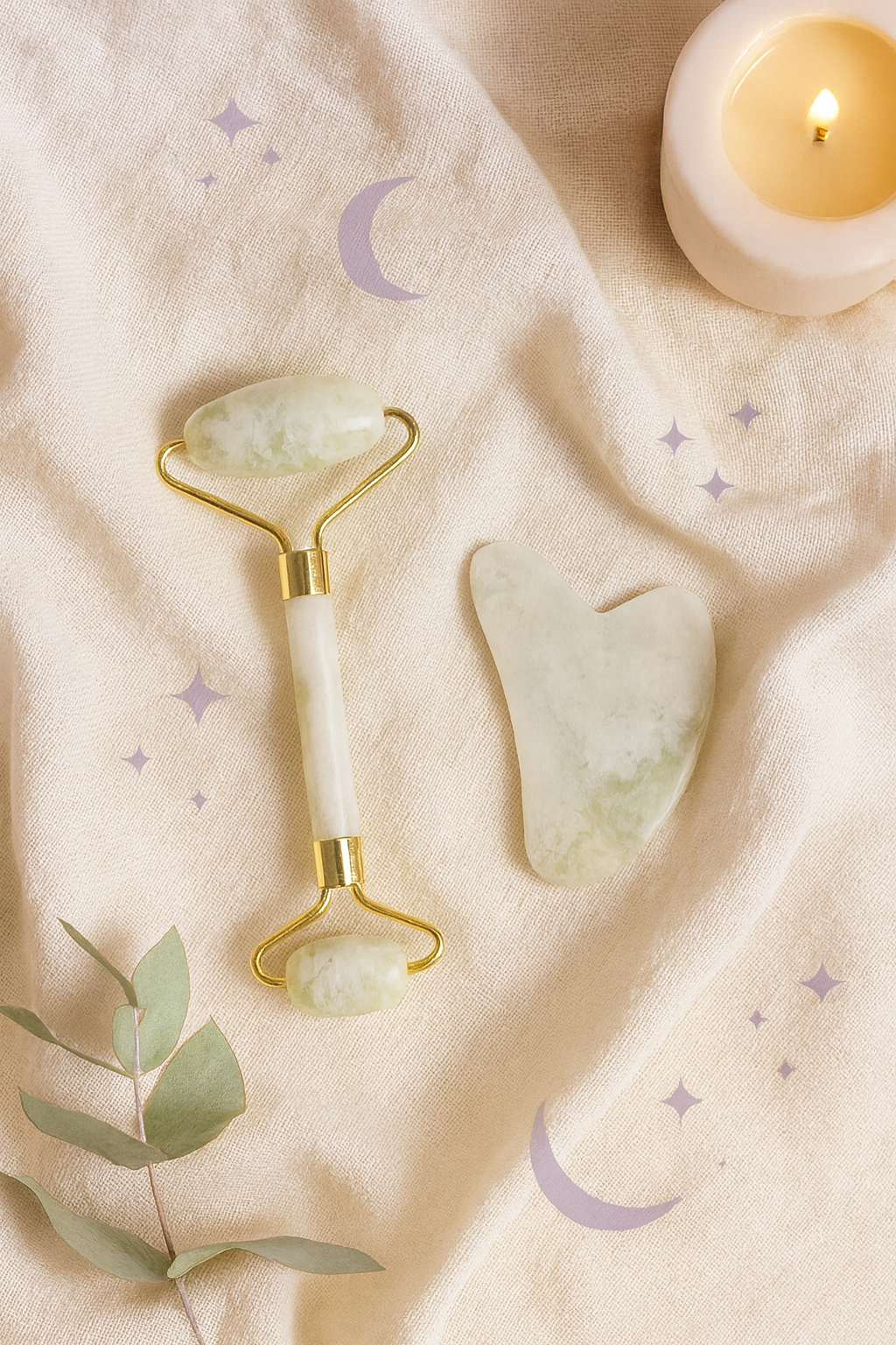 110g Xiu Yu White Jade Facial Roller Gua Sha Set