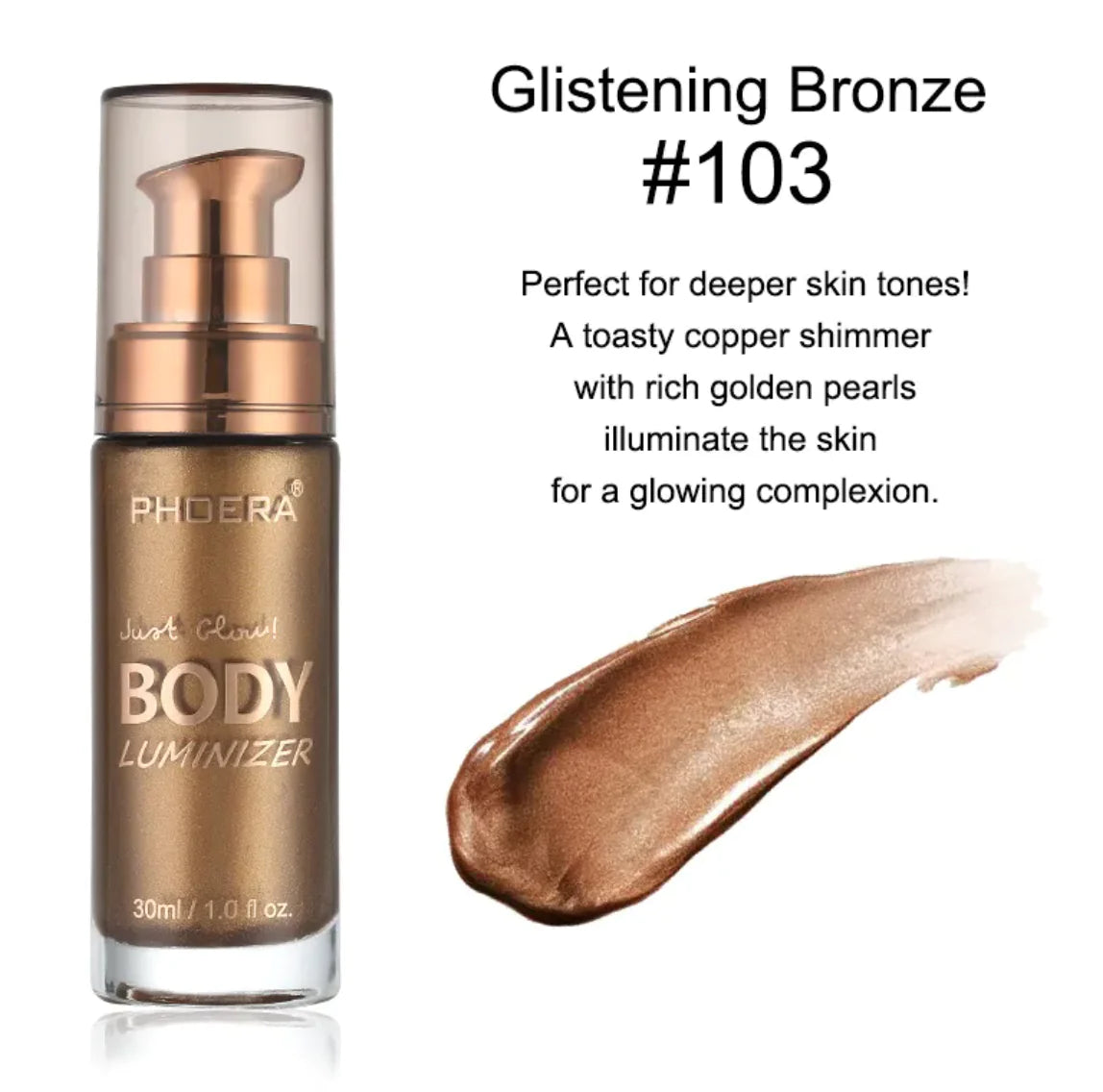 Enhance your skin’s natural radiance with this lightweight liquid highlighter. Perfect for face and body, it delivers a luminous shimmer while evening skin tone. Available in Rose Gold, Metallic Gold, and Glistening Bronze for a dazzling finish.